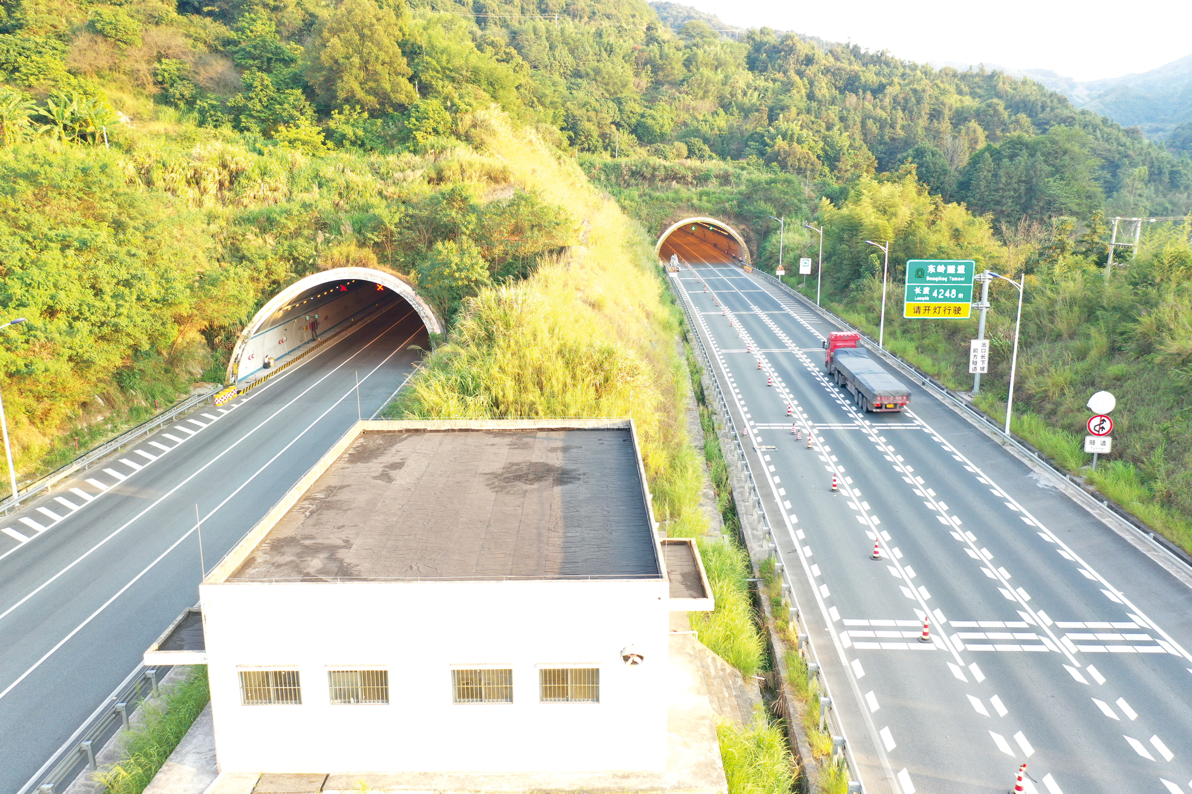 2015年12月建成通車(chē),為汕頭至湛江高速公路揭西大溪至博羅石壩段的控制性工程。左線隧道長(zhǎng)4248m,右線隧道長(zhǎng)4244m,雙向六車(chē)道,設(shè)計(jì)時(shí)速120 km/h。隧道洞口美觀大方,與周邊環(huán)境融為一體。 結(jié)合項(xiàng)目地質(zhì)條件復(fù)雜、結(jié)構(gòu)斷面大、工期緊等特點(diǎn),設(shè)計(jì)中積極利用新技術(shù)、新工藝,成功應(yīng)用復(fù)雜地質(zhì)條件隧道開(kāi)挖綜合技術(shù),確保工程建設(shè)與運(yùn)營(yíng)安全。