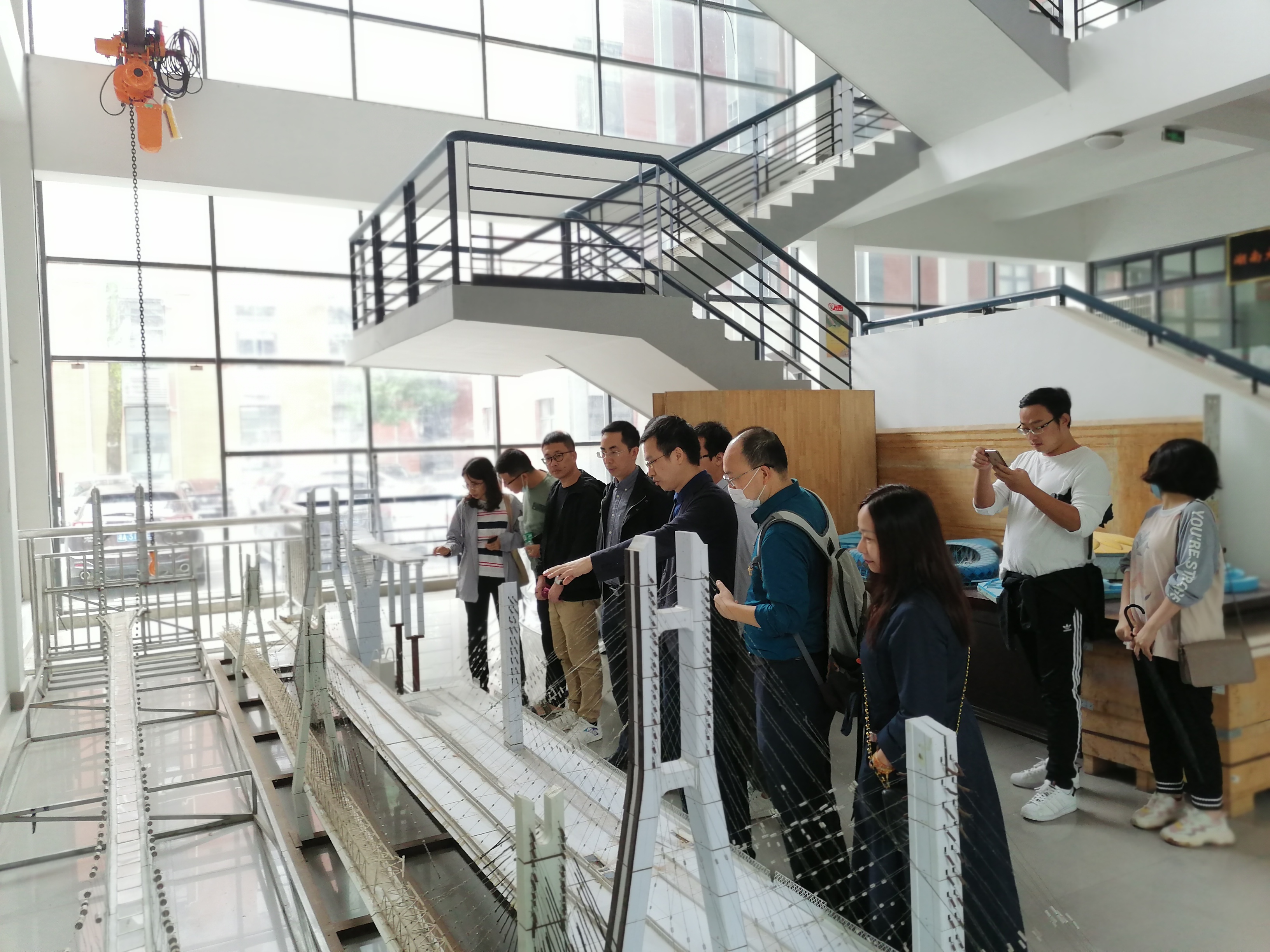 次日,在陳政清院士團(tuán)隊(duì)封周權(quán)教授的帶領(lǐng)下,大家前往湖南大學(xué)抗風(fēng)工程試驗(yàn)研究中心,參觀土木工程學(xué)院風(fēng)洞實(shí)驗(yàn)室,了解風(fēng)洞的構(gòu)造和工作原理,以及由我公司設(shè)計(jì)的東莞市濱海灣大橋在該風(fēng)洞實(shí)驗(yàn)室的全橋模型抗風(fēng)試驗(yàn)情況。