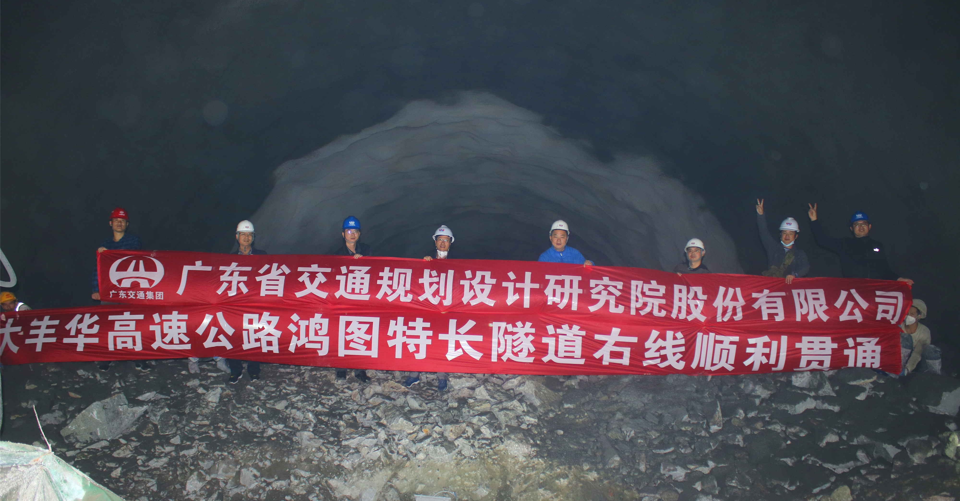 大豐華高速公路豐順至五華段共有三座隧道,除鴻圖特長(zhǎng)隧道外,其余隧道均已安全順利貫通。此次回訪重點(diǎn)參觀了鴻圖特長(zhǎng)隧道,其左線長(zhǎng)6336m,右線長(zhǎng)6350m,采用雙向兩車(chē)道高速公路標(biāo)準(zhǔn),設(shè)計(jì)速度為100km/h,最大埋深740m,穿越各期次斷裂構(gòu)造達(dá)18條之多,為我公司設(shè)計(jì)長(zhǎng)度最長(zhǎng)、埋深最大、地質(zhì)條件最復(fù)雜、預(yù)計(jì)工期最久的隧道;其豎井深298m,為廣東省最深。歷經(jīng)三年多的施工建設(shè),右線隧道已于2021年1月5日實(shí)現(xiàn)貫通,左線隧道預(yù)計(jì)于1月20日貫通。在建設(shè)過(guò)程中,鴻圖隧道施工至預(yù)測(cè)的富水段附近時(shí),進(jìn)口右線、左線先后發(fā)生高壓涌水,單個(gè)掌子面最大涌水量3.36萬(wàn)方/天,最大水壓4.8Mpa,至隧道貫通,前后共出現(xiàn)了7次高壓涌水,總涌水量相當(dāng)于3個(gè)西湖。我公司專(zhuān)業(yè)技術(shù)人員針對(duì)鴻圖特長(zhǎng)隧道高壓突涌水的情況,進(jìn)行了多次優(yōu)化設(shè)計(jì),采取全斷面前進(jìn)式帷幕預(yù)注漿,成功穿越斷層高壓涌水段,并對(duì)隧道襯砌結(jié)構(gòu)及防排水體系進(jìn)行了專(zhuān)門(mén)設(shè)計(jì),較好地解決了突涌水難題。