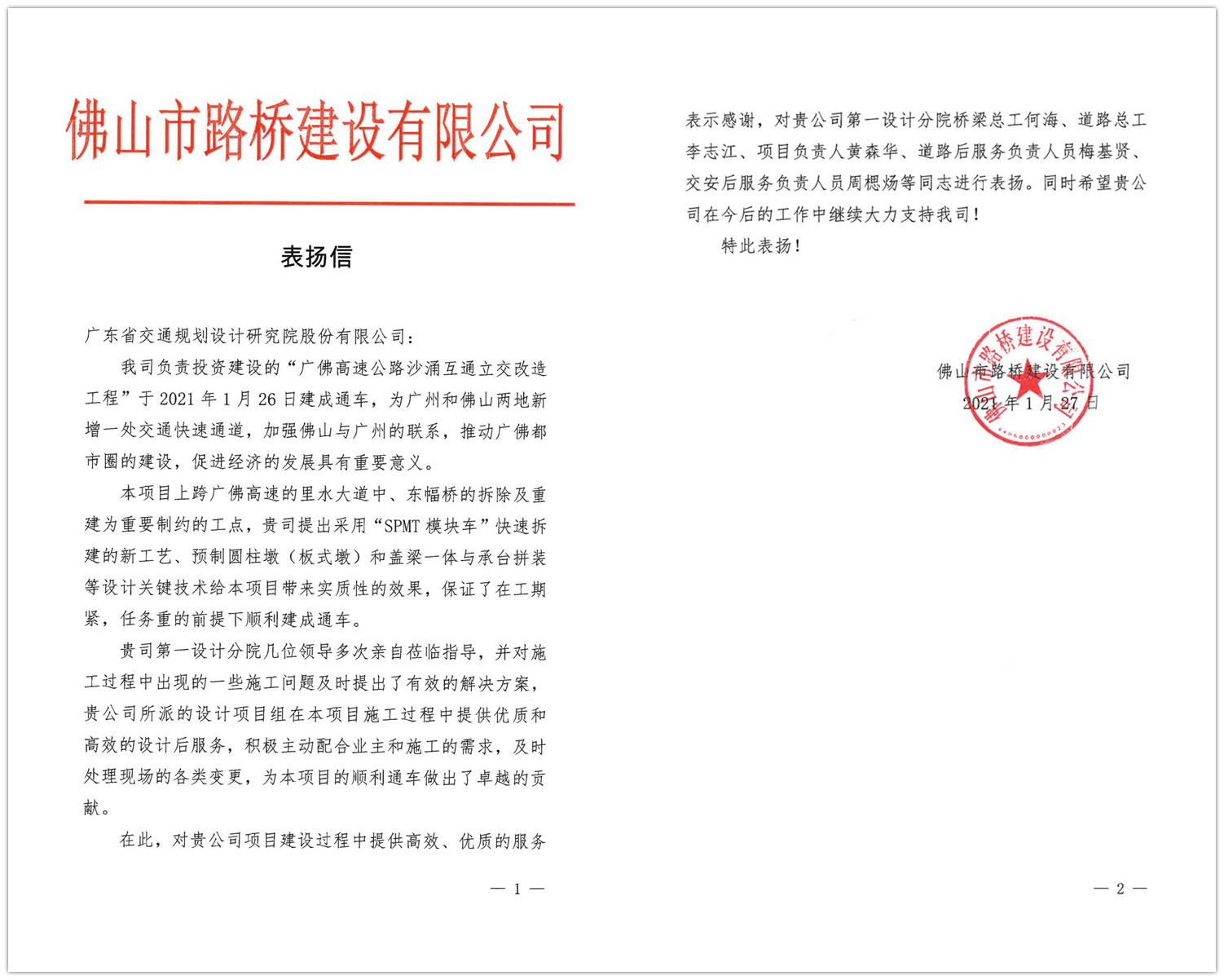 2021年1月26日,由我公司第一設計分院負責勘察設計的“廣佛高速公路沙涌互通立交改造工程”順利建成通車,標志著“SPMT模塊車‘墩梁協(xié)同’整跨快速拆建技術(shù)”在我省高速公路改造工程中首次應用成功。