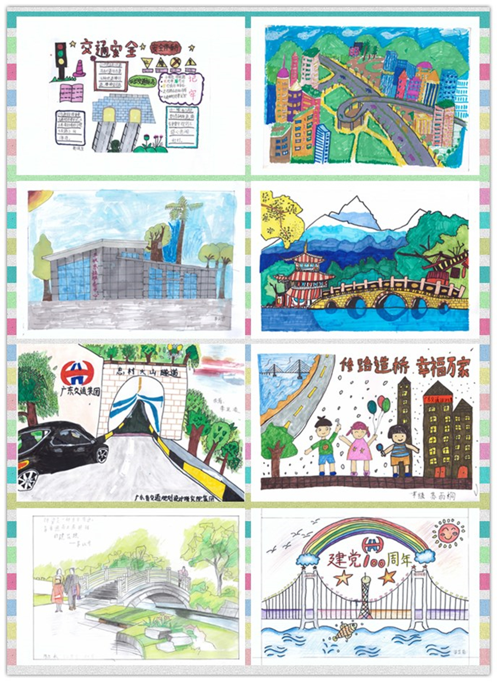 自從征集活動通知下發(fā)后,職工與孩子們積極響應本次征集活動。從購買工具紙張、構(gòu)思起筆到涂色修改,父母與孩子全程配合,共同完成了一張張精彩的作品。國畫、水粉畫、蠟筆畫,每幅作品都是筆筆走心:5歲孩子稚嫩的畫筆描繪《南沙大橋的天空》、《一路筑夢》,栩栩如生的《鳳凰三橋》、《東華大橋》、《騰飛的高速》、《廣梧高速息村大山隧道》里有路和橋的連接、《通往幸福的橋》、《初升的太陽》、《空中交通》滿懷孩子們對幸福的期盼和對未來的暢想……