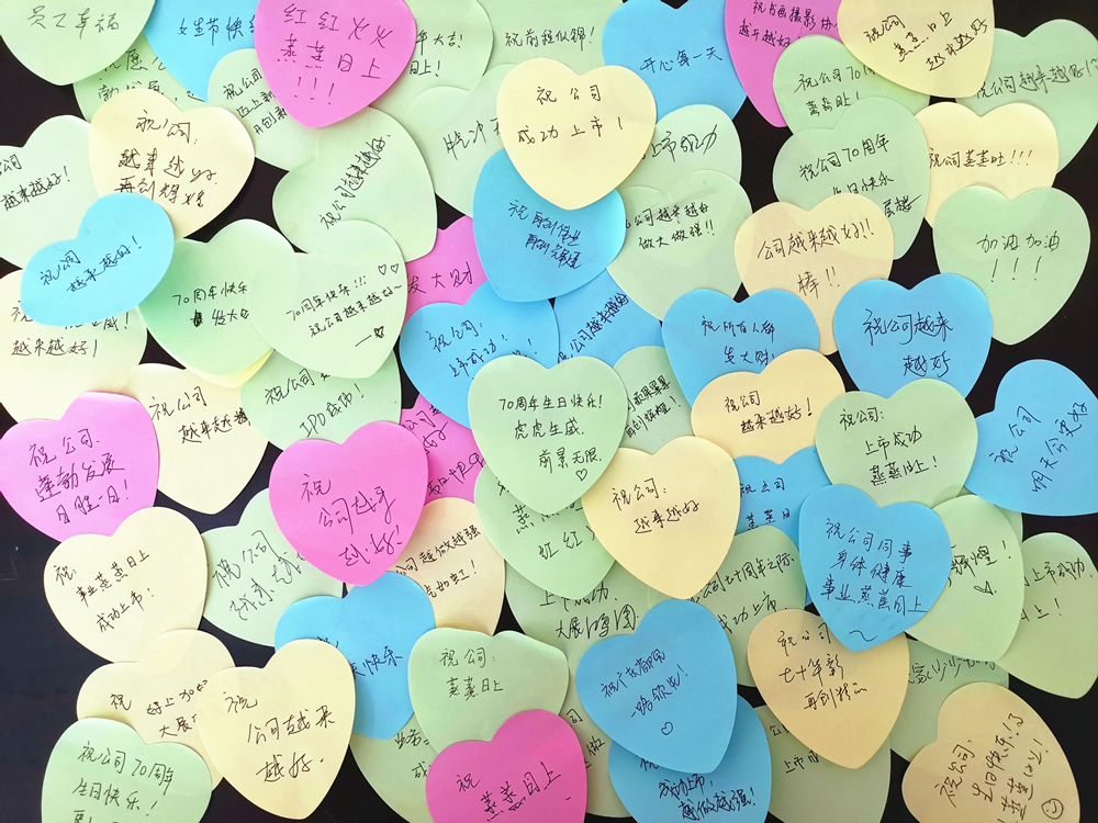 2022年,恰逢公司七十歲生日,公司工會結(jié)合“三八”婦女節(jié)主題開展了“巾幗獻(xiàn)祝?!被顒??;顒蝇F(xiàn)場,女職工們將自己對公司七十歲生日的祝福親筆書寫在心形便簽紙上,并由衷地祝愿公司業(yè)務(wù)蒸蒸日上,發(fā)展越來越好。公司工會在活動現(xiàn)場還給女職工們準(zhǔn)備了節(jié)日專屬小禮物,以此傳遞對她們的美好祝福。
