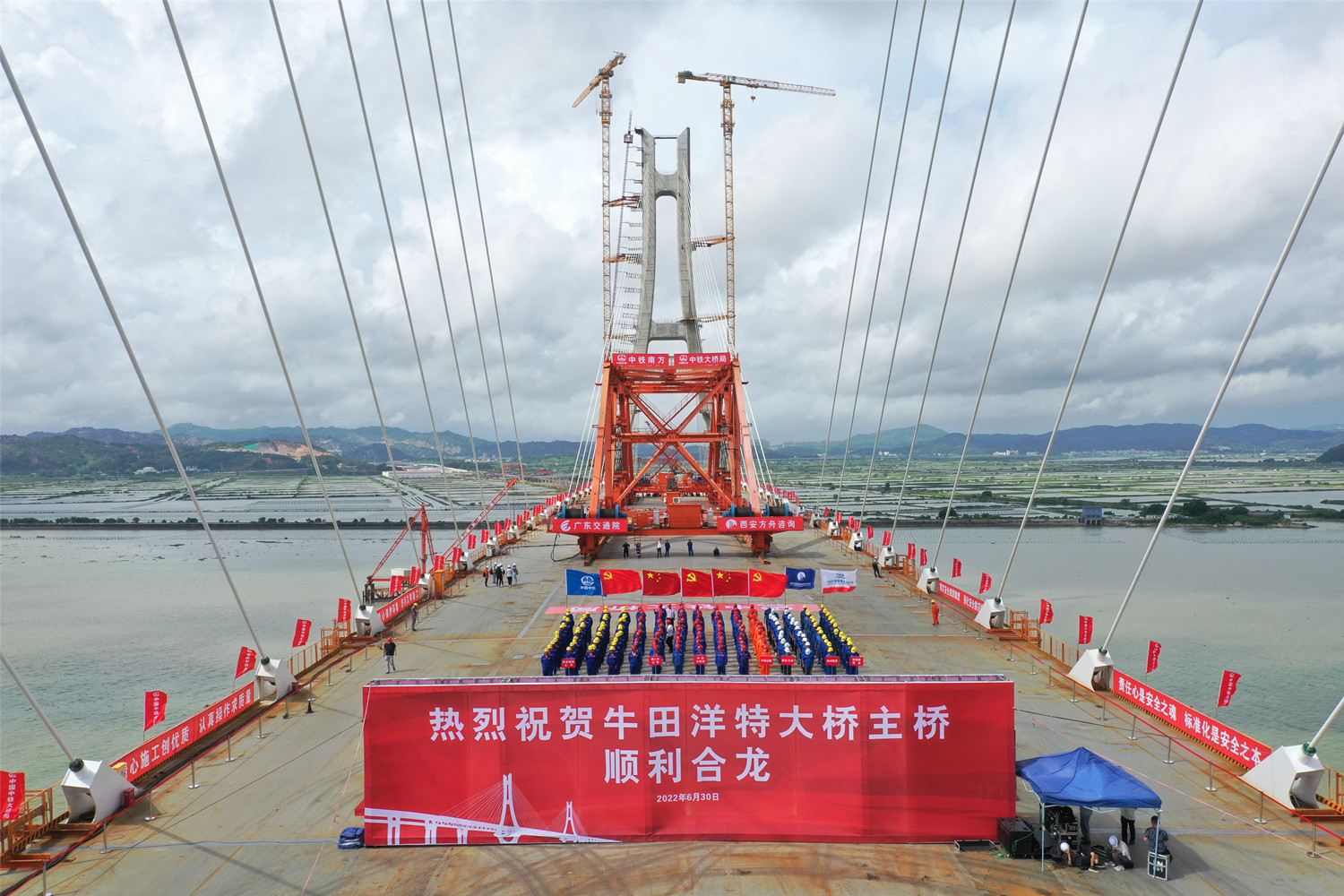 6月30日上午10時08分,合龍總指揮一聲令下,隨著最后一節(jié)鋼桁梁與兩邊鋼桁梁的精準(zhǔn)連接,牛田洋特大橋成功合龍。
