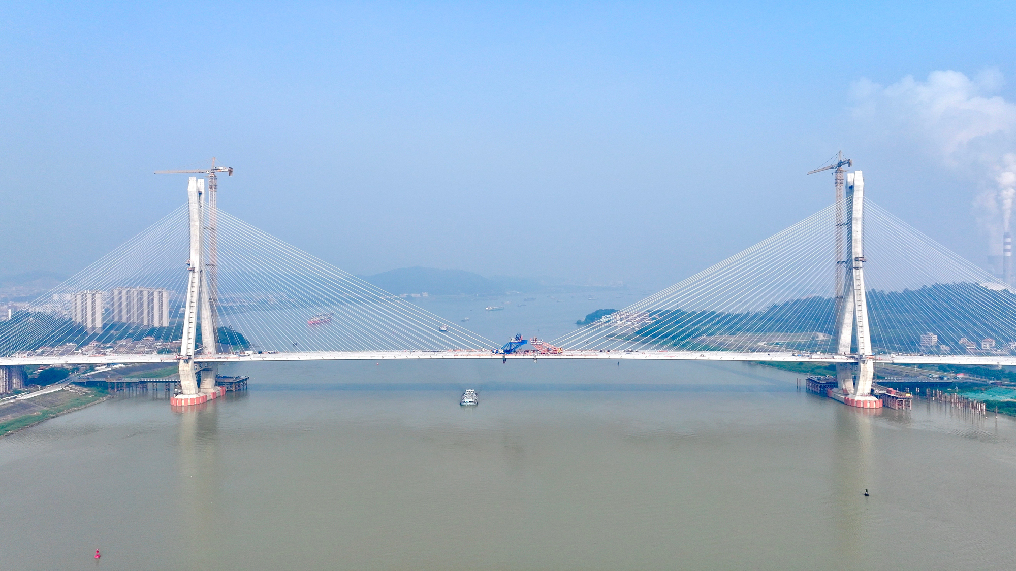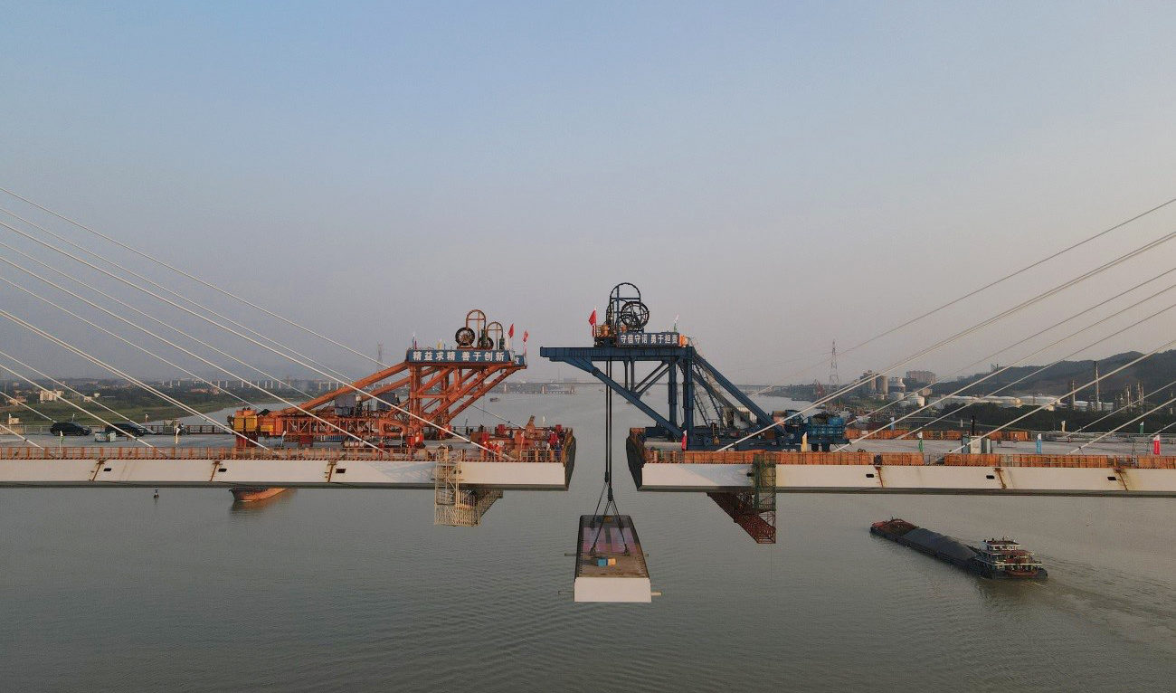 富龍西江特大橋位于廣東省佛山市境內(nèi),是佛山市“一環(huán)西拓”建設(shè)戰(zhàn)略西拓工程的重要組成部分,也是推動粵港澳大灣區(qū)建設(shè)交通先行的重要項(xiàng)目,先后獲評2017年廣東省重點(diǎn)建設(shè)項(xiàng)目、交通運(yùn)輸部首批“平安百年品質(zhì)工程”創(chuàng)建示范項(xiàng)目、交通運(yùn)輸部2020年度交通運(yùn)輸行業(yè)重點(diǎn)科技項(xiàng)目、廣東省2020年度公路水運(yùn)工程省級“平安工地”典型項(xiàng)目等榮譽(yù)。該項(xiàng)目跨越西江航道,共設(shè)樞紐互通立交2處、主跨580米斜拉橋1座,路線全長5.81公里,設(shè)計(jì)速度80公里/小時,雙向八車道一級公路,總投資38.9億元。主橋采用主跨580米的雙塔雙索面混合梁斜拉橋(鋼-UHPC組合梁+混凝土梁),跨徑布置為(69+176+580+176+69)米,全長1070米。該項(xiàng)目的建設(shè)將進(jìn)一步完善廣佛西部片區(qū)與廣佛中心現(xiàn)代綜合交通體系,推進(jìn)西江兩岸城市聯(lián)通發(fā)展,對加速沿線片區(qū)“交通融合、產(chǎn)業(yè)融合、城市融合”,完善灣區(qū)交通基礎(chǔ)設(shè)施具有重大戰(zhàn)略意義。