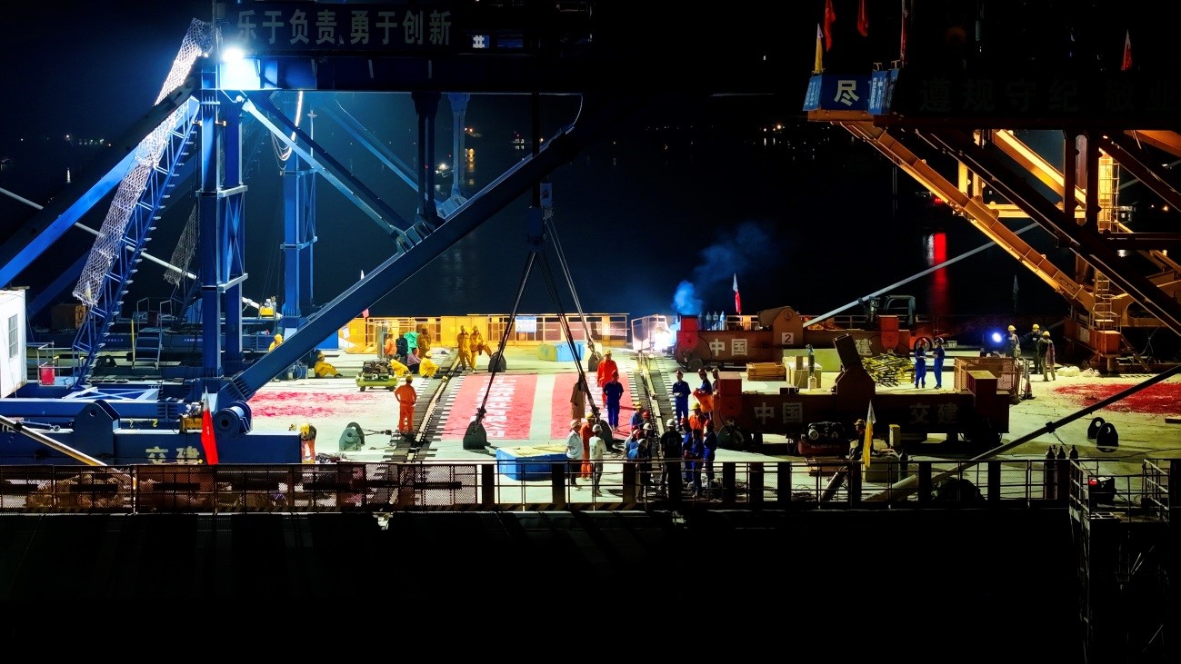 11月1日16時,最后一節(jié)UHPC組合梁開始慢慢抬升。直至入夜時分,兩邊主梁完成精準(zhǔn)連接,由我公司負(fù)責(zé)勘察設(shè)計(jì)的富龍西江特大橋主橋成功合龍。這一關(guān)鍵控制性節(jié)點(diǎn)的順利拉通,為大橋通車奠定了堅(jiān)實(shí)的基礎(chǔ)。