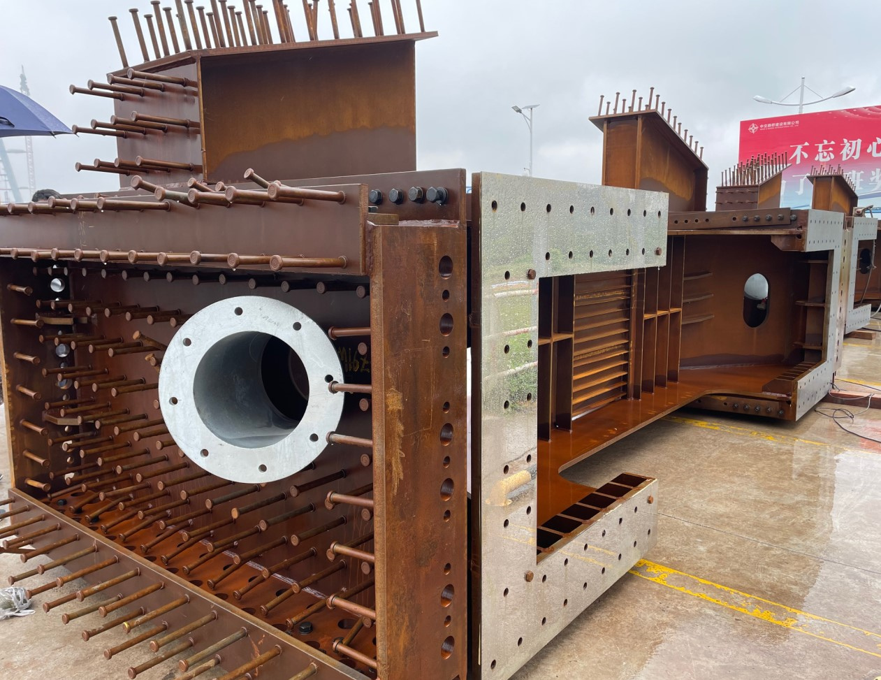 富龍西江特大橋首次采用UHPC組合橋面板和全節(jié)段工廠蒸養(yǎng)快速組合技術(shù)。主梁橋面板采用完全取消正交異性鋼橋面板的鋼-UHPC組合橋面板結(jié)構(gòu),即在鋼梁的橋面板下設(shè)置8mm帶PBL剪力鍵的底鋼板,與15cm厚的UHPC橋面板構(gòu)成組合橋面板,徹底解決正交異性鋼橋面的疲勞開裂和鋪裝易損難題,解決普通混凝土橋面板因抗拉強(qiáng)度低而容易產(chǎn)生橋面板裂縫的問題。索塔錨固采用先滑后固型組合鋼錨箱,改善索塔錨固區(qū)的受力,解決施工過程中混凝土塔壁開裂的問題,提高索塔錨固區(qū)混凝土結(jié)構(gòu)耐久性,鋼錨箱采用免涂裝耐候鋼。