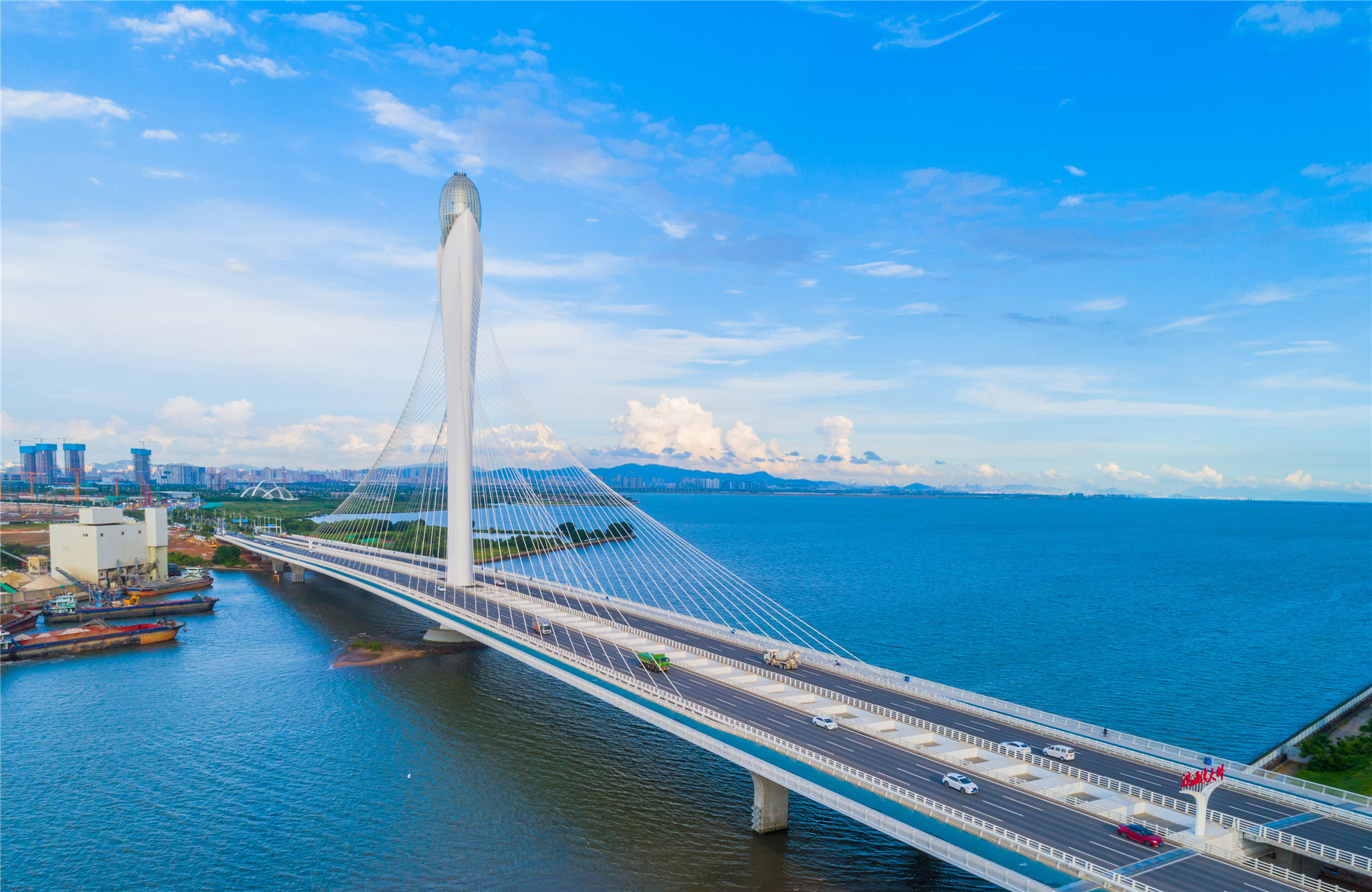 南沙大橋——在大小、高低的呼應(yīng)中,鋼筋水泥化作了一道優(yōu)雅而堅(jiān)定的天際線,騰飛而起。