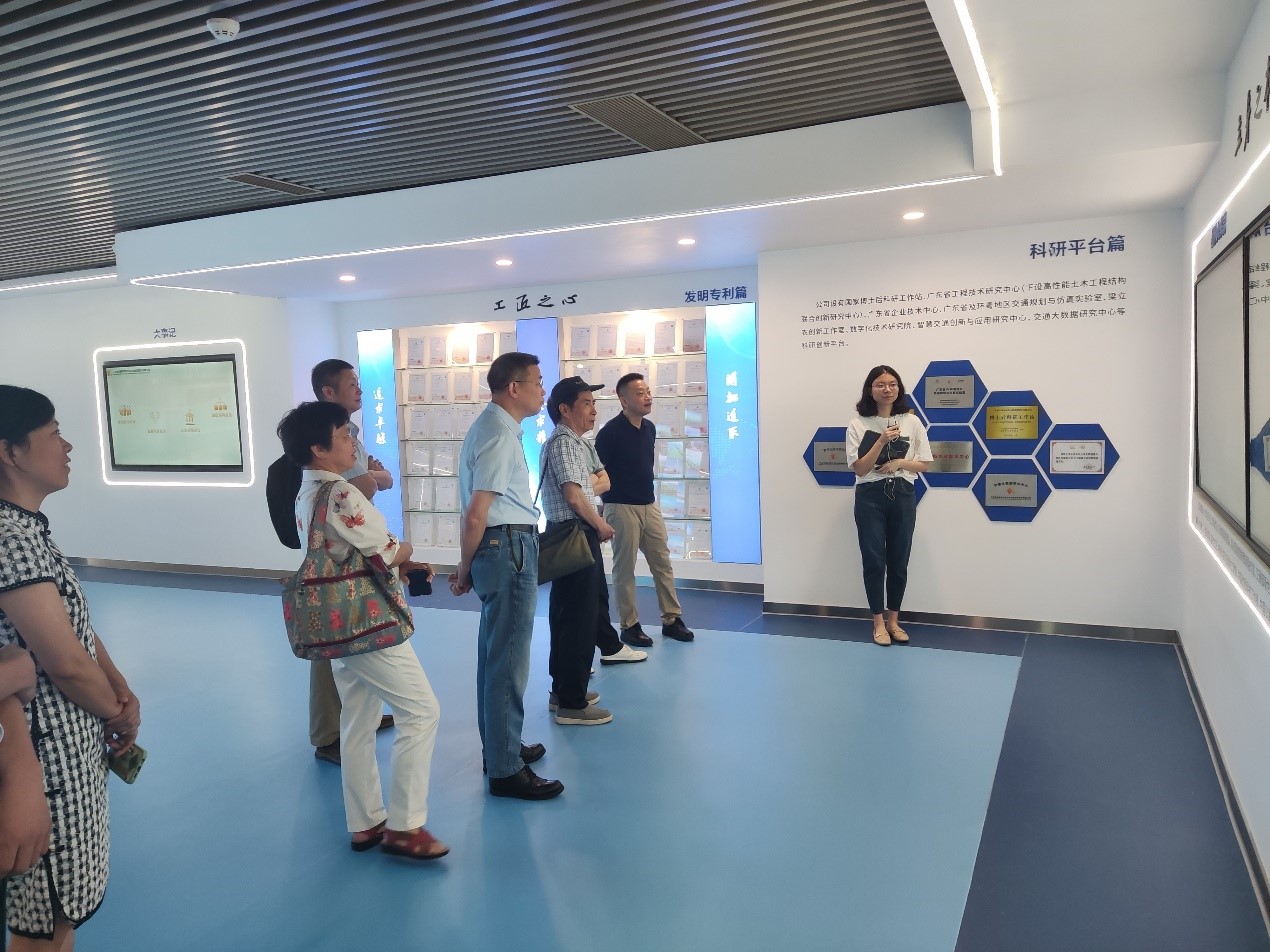 副總經(jīng)理蔡小楊、陳賢文陪同省公路學(xué)會(huì)一行參觀了企業(yè)展廳,展示了廣東交通院的奮進(jìn)之路、立身之本、工匠之心、品質(zhì)之光、領(lǐng)先之道、信仰之力,彰顯了公司“一路領(lǐng)先”的企業(yè)精神。