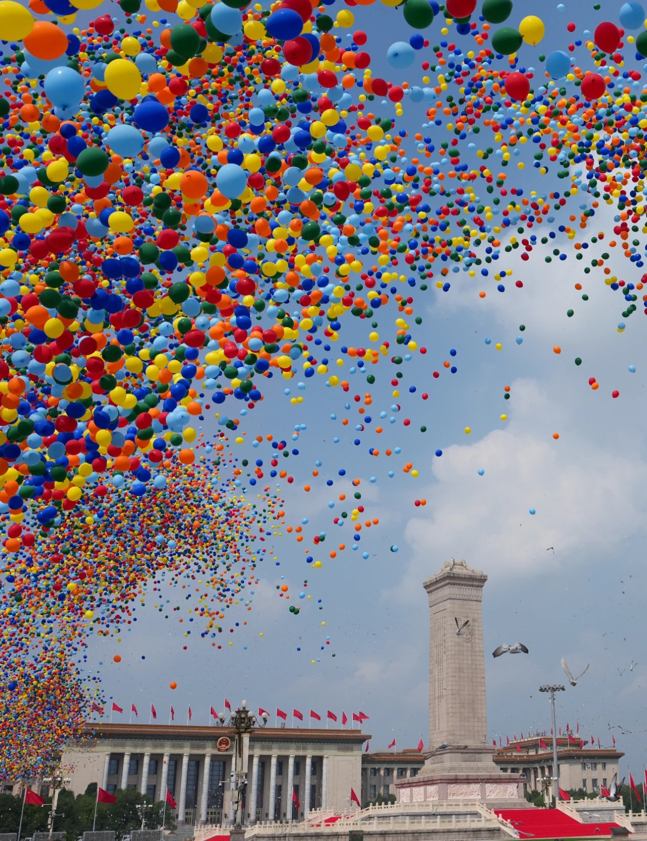 天安門廣場上,長城烽火臺造型的年號臺巍然矗立,象征著中國人民在抗戰(zhàn)烽火中用血肉之軀筑起的鋼鐵長城。14只展翅欲飛的和平鴿雕塑,默默訴說著中華民族14年艱苦卓絕的抗戰(zhàn)歷程。豐饒金、城墻紅、橄欖綠三種主色調(diào)交相輝映,寓意著國家的根基在人民、血脈在人民、力量在人民。閱兵活動按照閱兵式、分列式兩個步驟進行。中共中央總書記、國家主席、中央軍委主席習(xí)近平發(fā)表重要講話并檢閱部隊,這一刻,歷史與當(dāng)代在此交匯,光榮與夢想在此傳承。