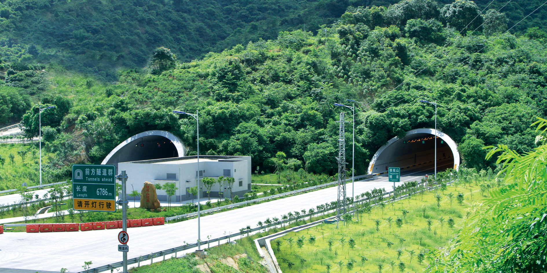 粵湘高速公路博羅至深圳段控制性工程,兩座隧道距離僅有40米。雙向六車(chē)道。石鼓隧道左線長(zhǎng)4011米,右線長(zhǎng)3880米;水澗山隧道左線長(zhǎng)2929米,右線長(zhǎng)2907米。榮獲中國(guó)建設(shè)工程“魯班獎(jiǎng)”、廣東省優(yōu)秀工程勘察設(shè)計(jì)一等獎(jiǎng)。