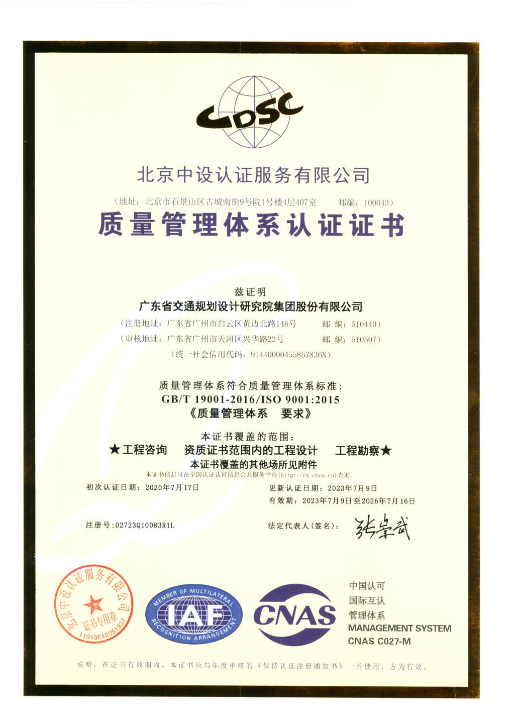質(zhì)量管理體系升級版認證證書