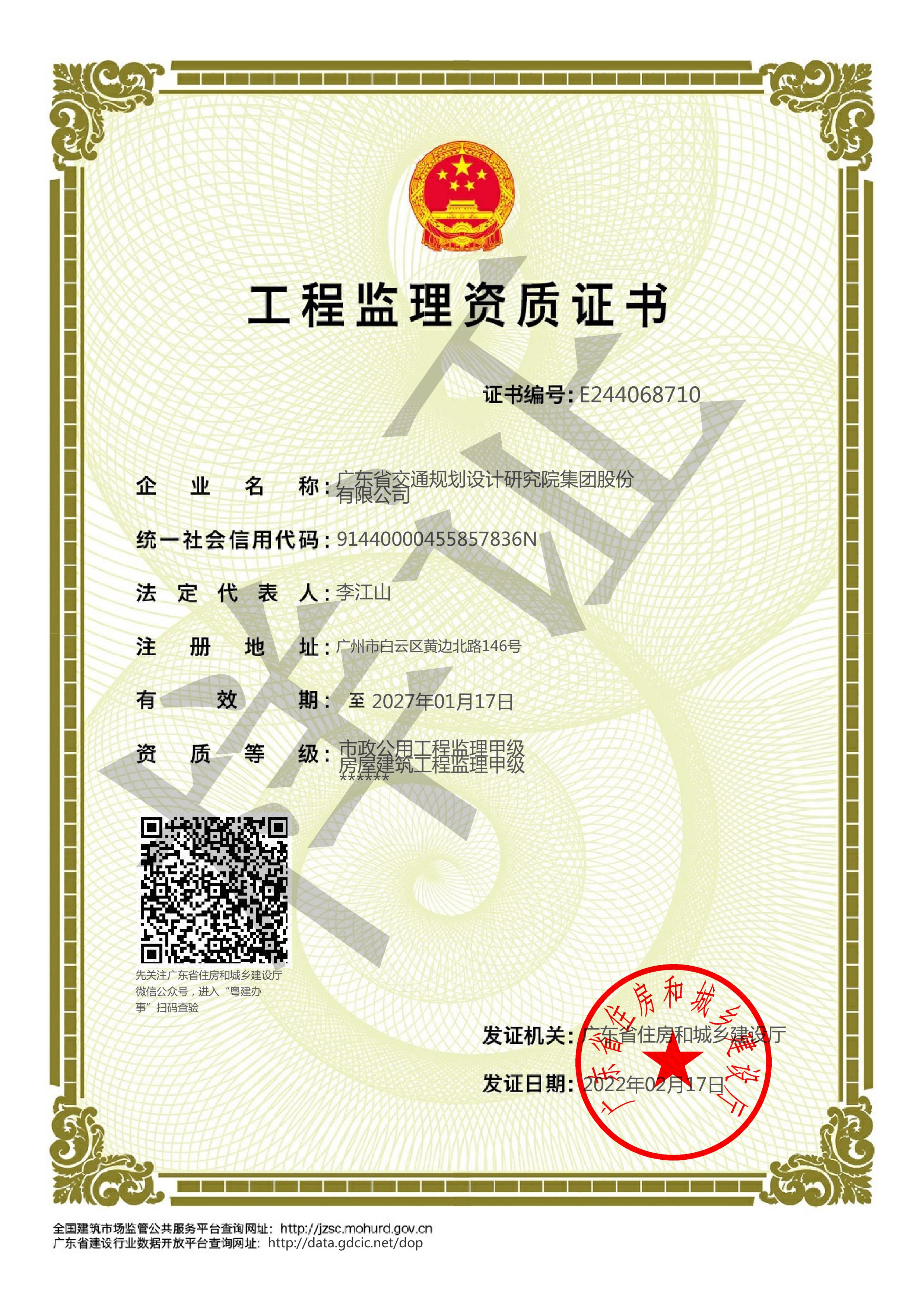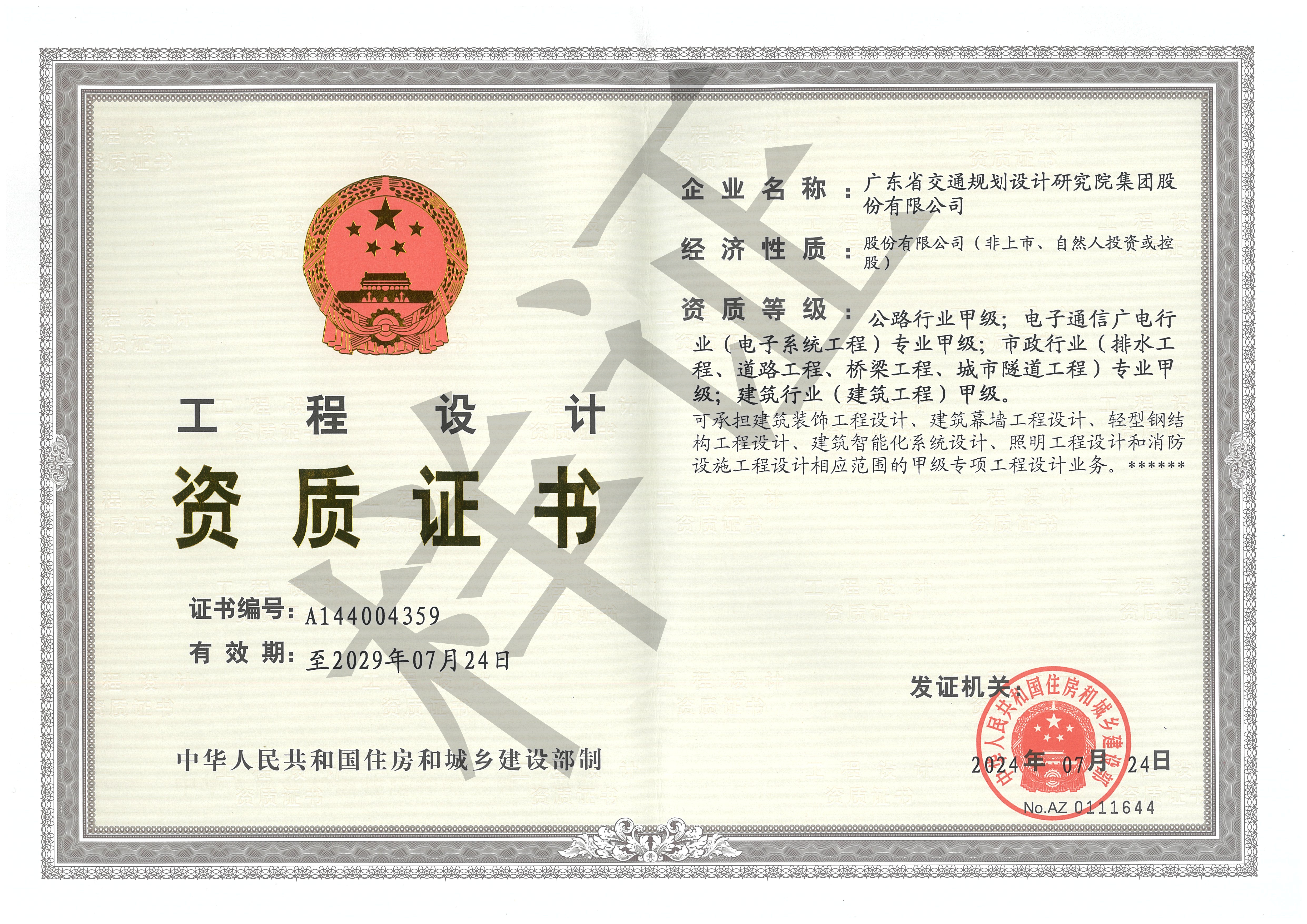 工程設(shè)計(jì)-公路行業(yè)甲級(jí);電子通信廣電行業(yè)(電子系統(tǒng)工程)專業(yè)甲級(jí);市政行業(yè)(排水工程、道路工程、橋梁工程、城市隧道工程)專業(yè)甲級(jí);建筑行業(yè)(建筑工程)甲級(jí)
