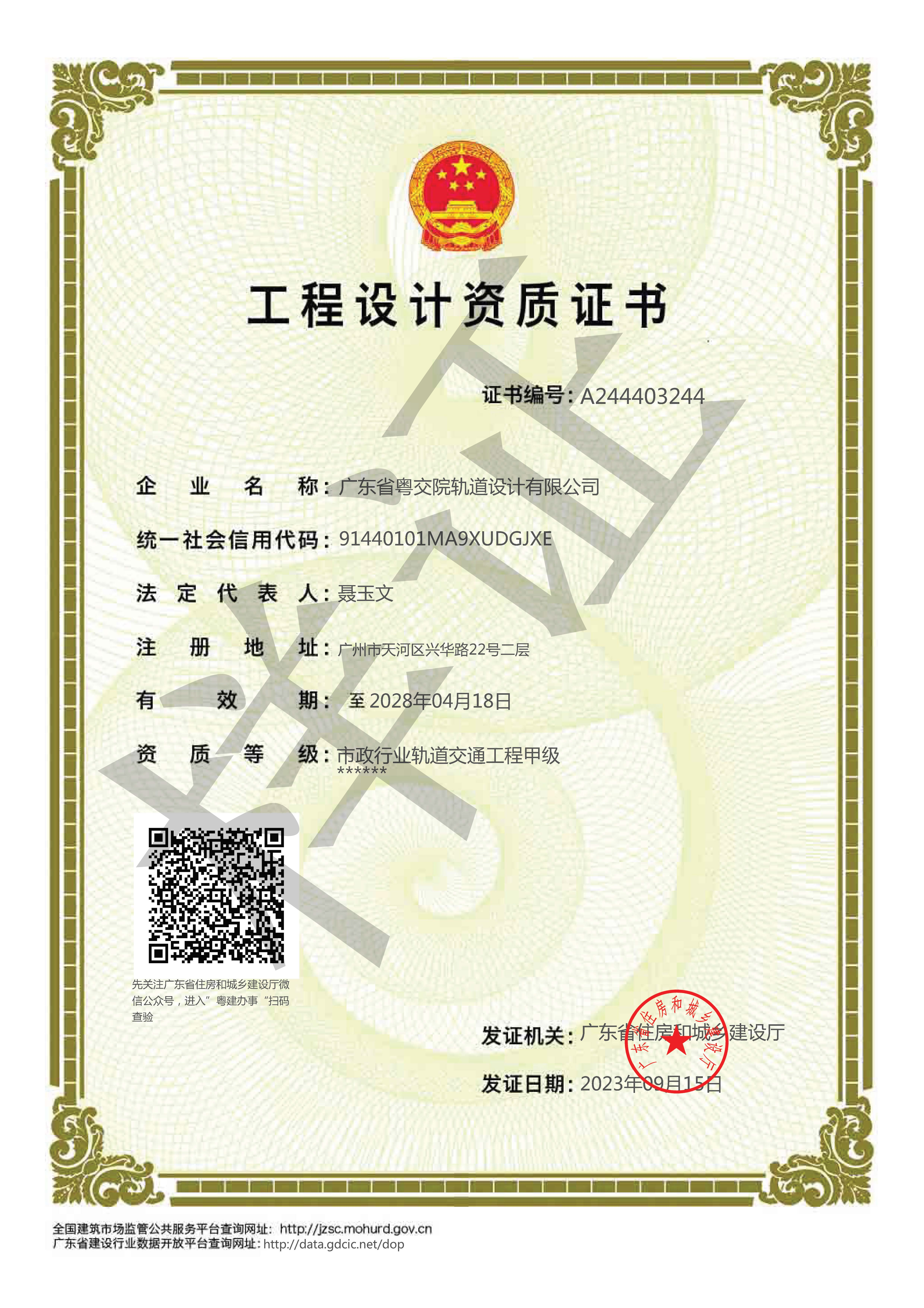工程設(shè)計(jì)-市政行業(yè)軌道交通工程甲級(jí)