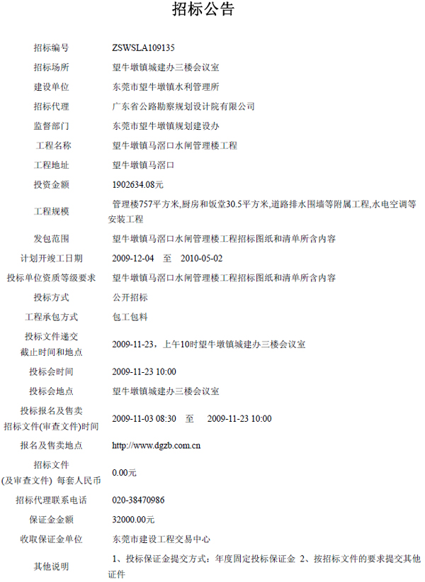 望牛墩鎮(zhèn)馬滘口水閘管理樓工程招標公告