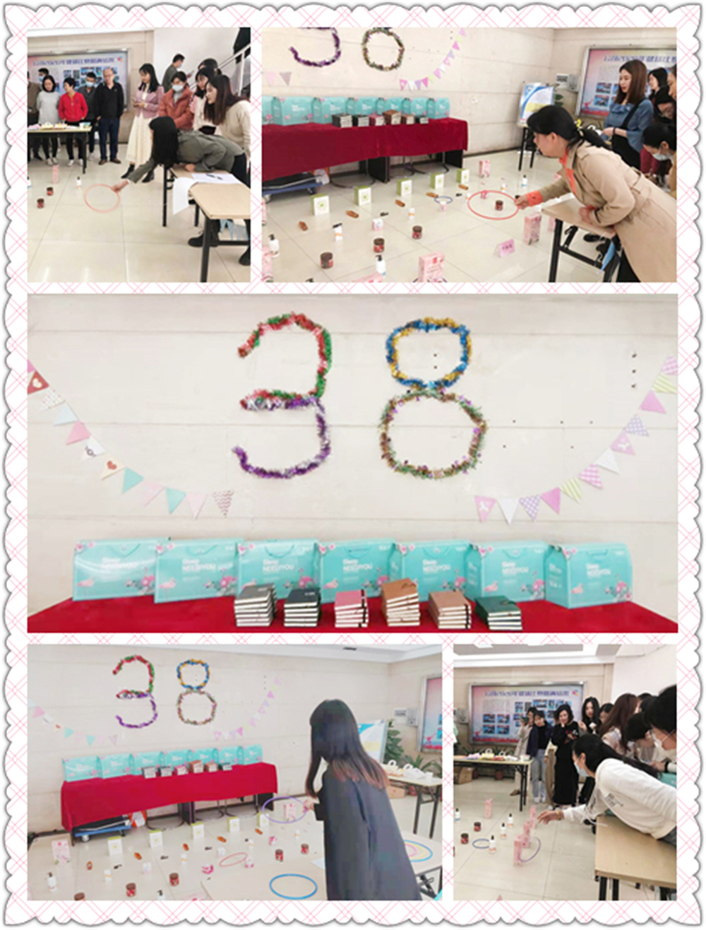 節(jié)日當天,公司工會組織開展了“趣味套圈”活動,獎品池中擺滿了面膜、口紅、水乳套裝、防曬霜、花茶等小禮物,參與者每人3個圈,站在規(guī)定的距離按順序套禮品;面對滿滿的禮品,大家個個摩拳擦掌,使出渾身解數(shù),而一旁的觀戰(zhàn)者們不時傳出笑聲、掌聲和歡呼聲,躍躍欲試。