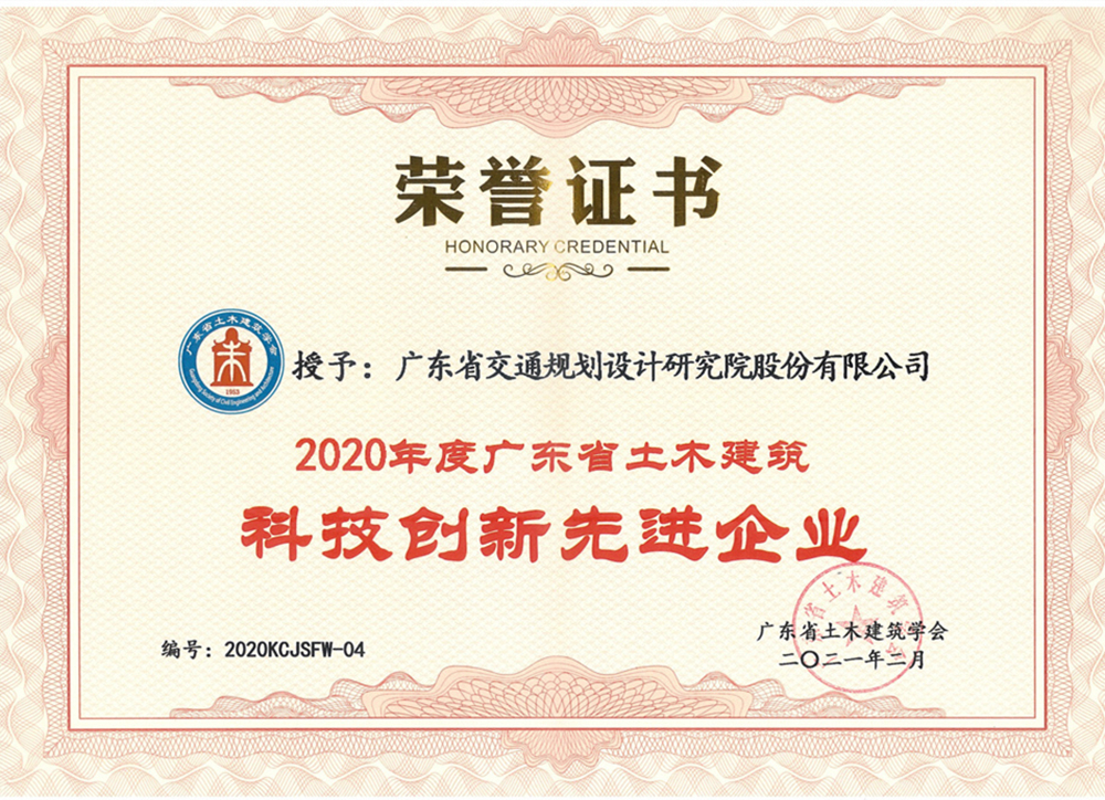 近日,公司被廣東省土木建筑學(xué)會授予“2020年度廣東省土木建筑科技創(chuàng)新先進(jìn)企業(yè)”榮譽稱號;公司副總工程師梁志勇和萬志勇、巖土勘察院院長張金平、第四設(shè)計院總工程師徐德志4人被評為“2020年度廣東省土木建筑優(yōu)秀科技工作者”。特此報喜。
