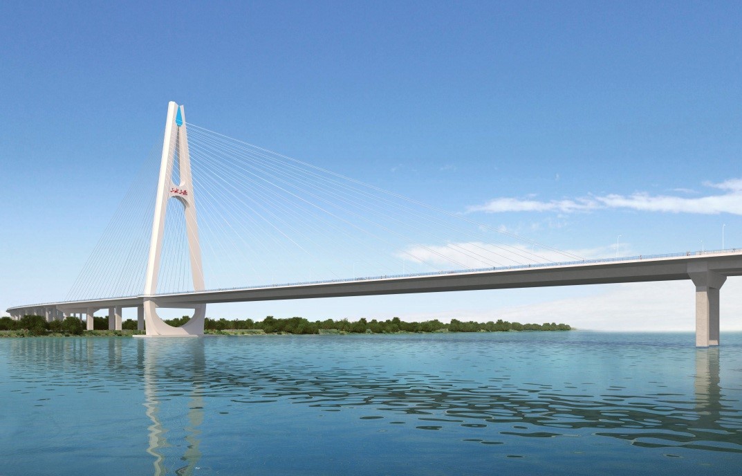 該橋景觀要求高、建設(shè)條件復(fù)雜。公司項目組經(jīng)過多輪創(chuàng)意構(gòu)思和研究推敲,決定主塔造型采用三水滴塔方案?!八嶍党侨瓍R,近悅遠(yuǎn)來荷香迎?!睒蛑肪郾苯?、西江與綏江三水于一處;塔冠水滴、上塔柱鏤空、整塔柱鏤空共同形成三顆水滴,寓意“三水”。水象征著博大、包容、細(xì)膩,三水滴塔則展現(xiàn)著三水人民剛?cè)岵?jì)的品格。整個塔型似三水荷花花苞,又似觀音瓶,寓意“平安三水”。