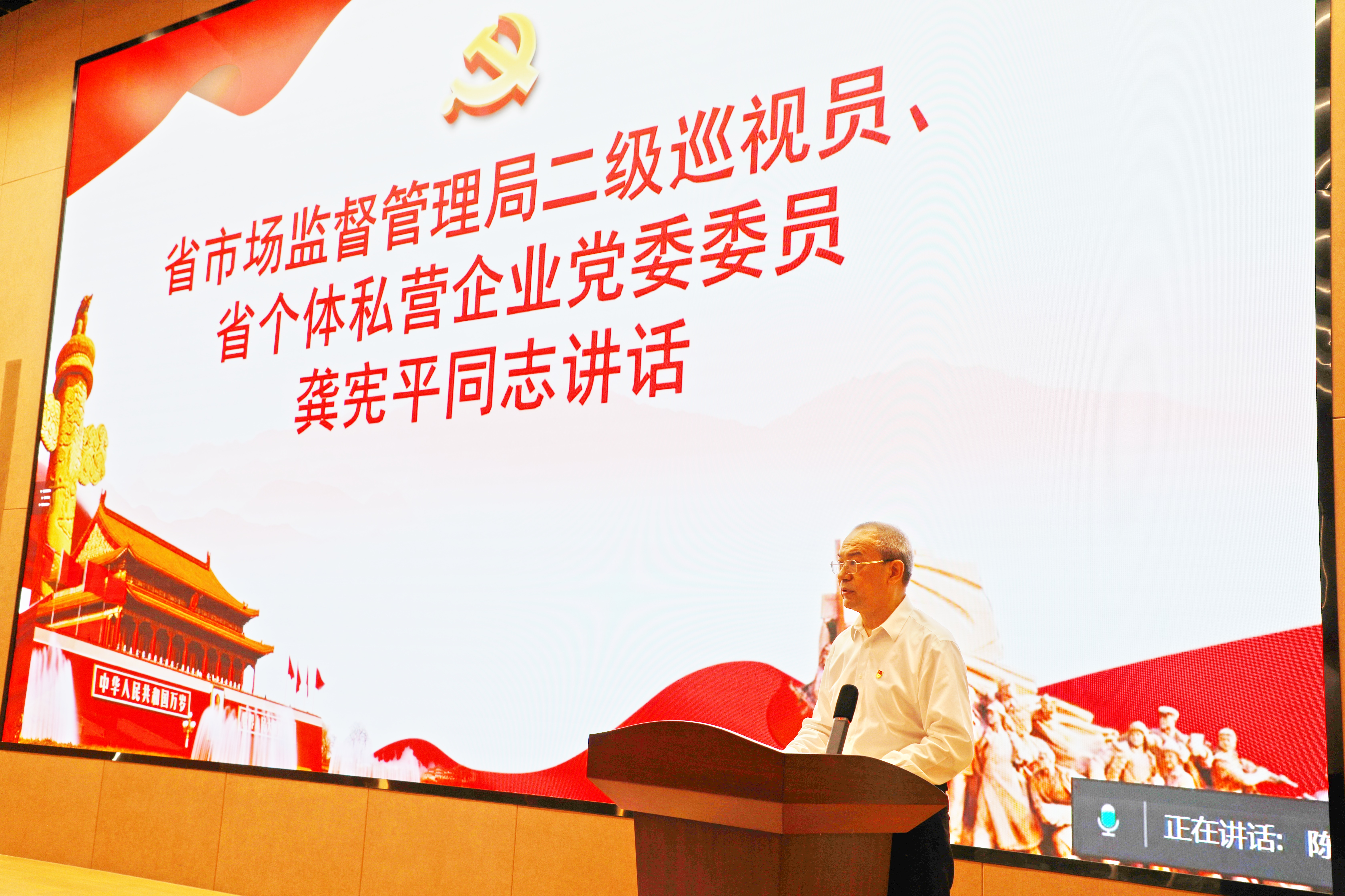 省市場監(jiān)督管理局二級(jí)巡視員、省個(gè)體私營企業(yè)黨委委員龔憲平作了講話,肯定了公司黨委所取得的各項(xiàng)黨建工作成果,并勉勵(lì)公司黨委繼續(xù)發(fā)揮先鋒模范帶頭作用,主動(dòng)作為、奮發(fā)進(jìn)取,用紅色“引擎”激活新動(dòng)能,以高質(zhì)量黨建推動(dòng)企業(yè)高質(zhì)量發(fā)展。