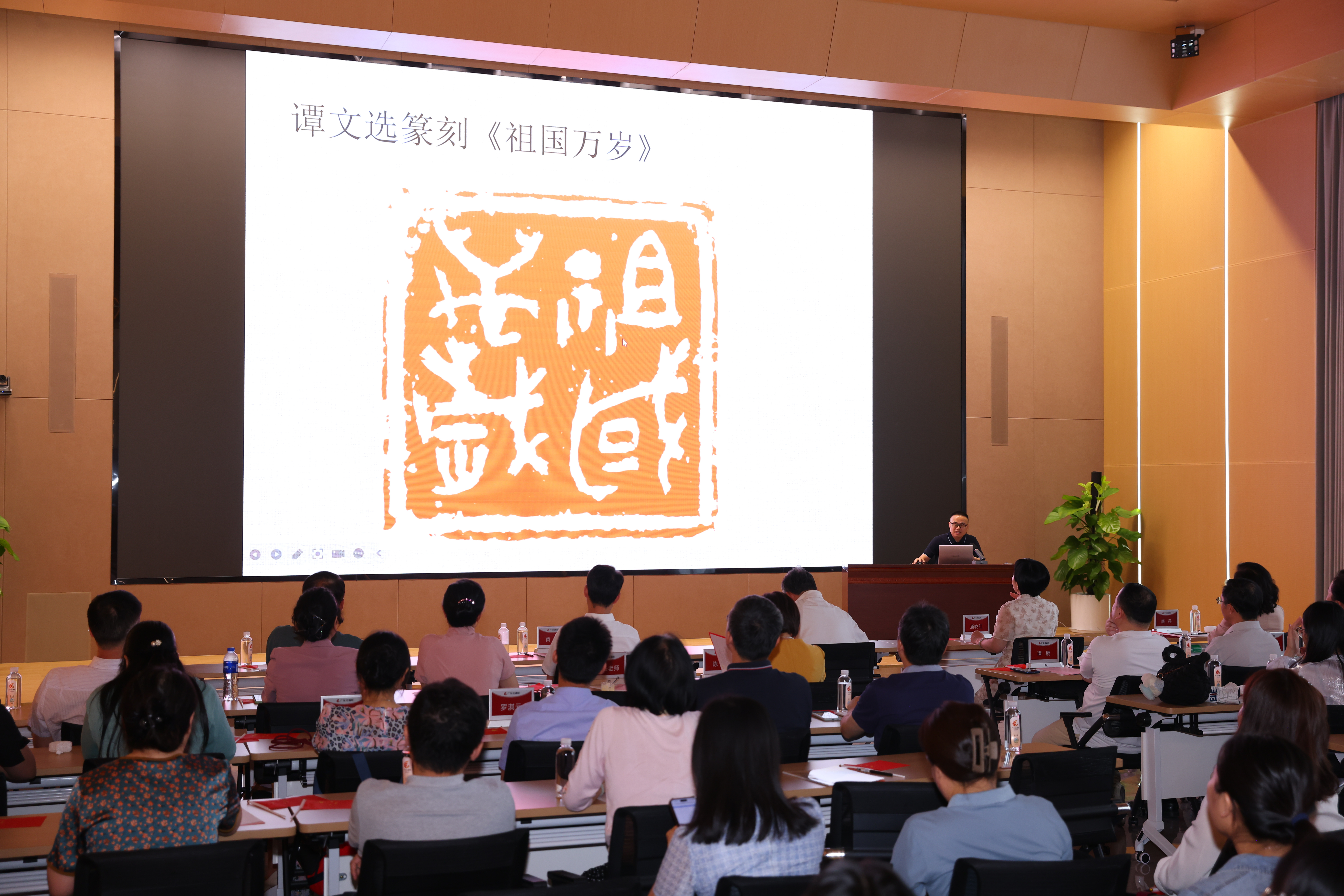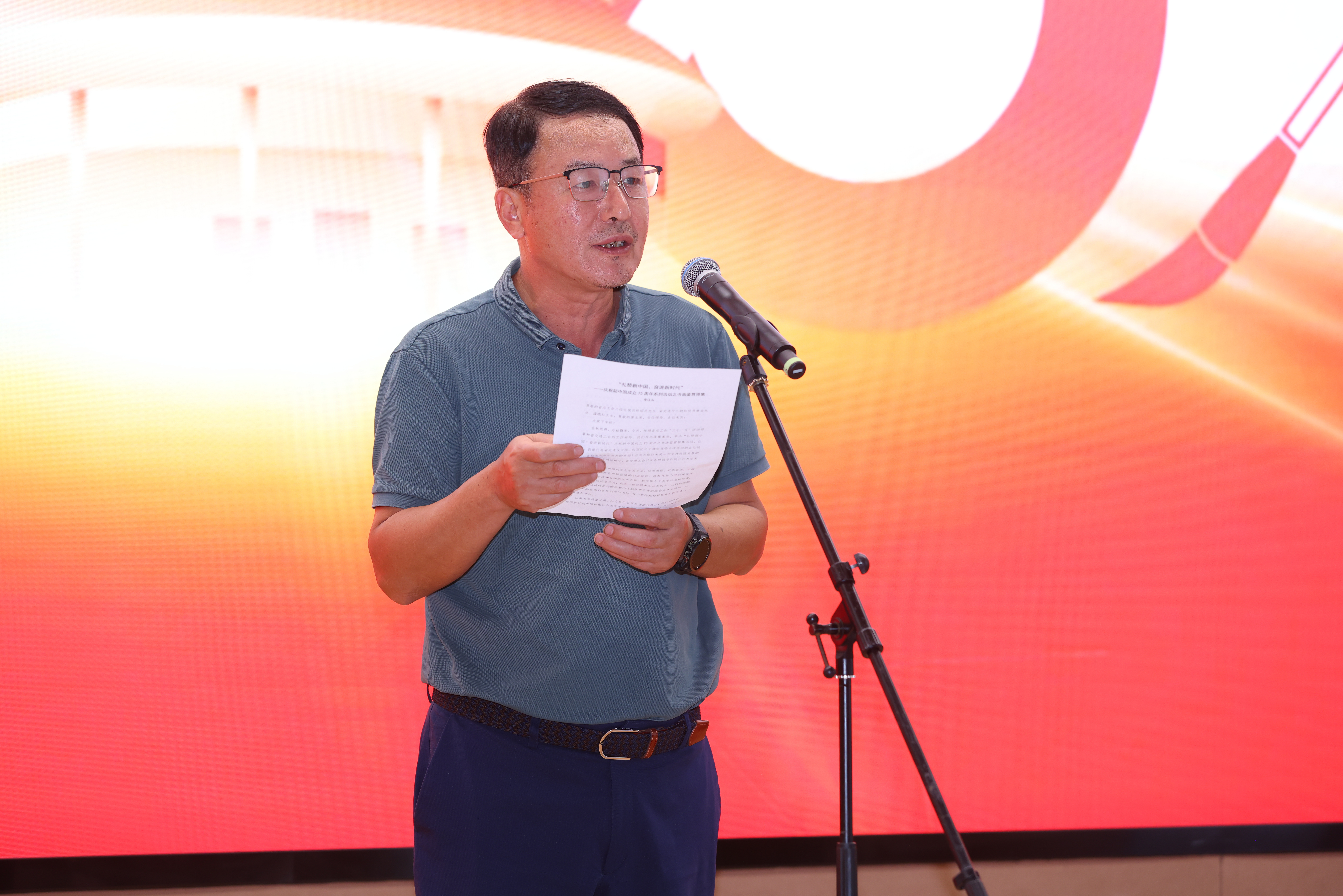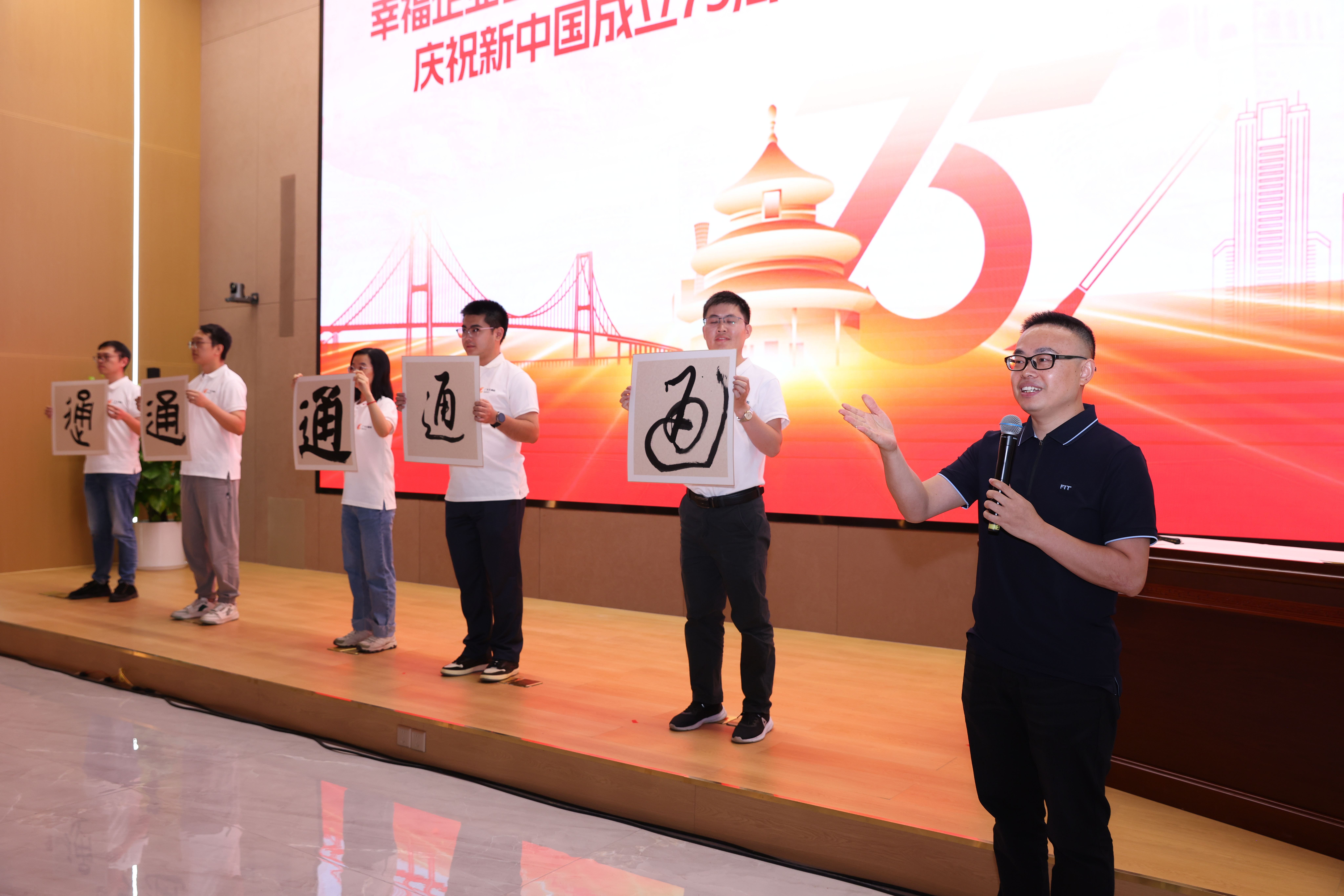 翰墨丹青頌經(jīng)典,以文會(huì)友譜華章。廣州美術(shù)學(xué)院譚文選老師以其深厚的藝術(shù)造詣和生動(dòng)的講解方式,為現(xiàn)場(chǎng)觀眾帶來了一場(chǎng)別開生面的書法鑒賞授課,使大家從中領(lǐng)略了書法藝術(shù)的獨(dú)特魅力?;顒?dòng)中還穿插了書法獻(xiàn)禮環(huán)節(jié),譚老師現(xiàn)場(chǎng)揮毫潑墨,創(chuàng)作了一幅寓意深遠(yuǎn)的書法作品,在祖國母親75歲生日之際,向祖國獻(xiàn)上最真摯的祝福,祝福祖國繁榮昌盛,祝福人民幸福安康。