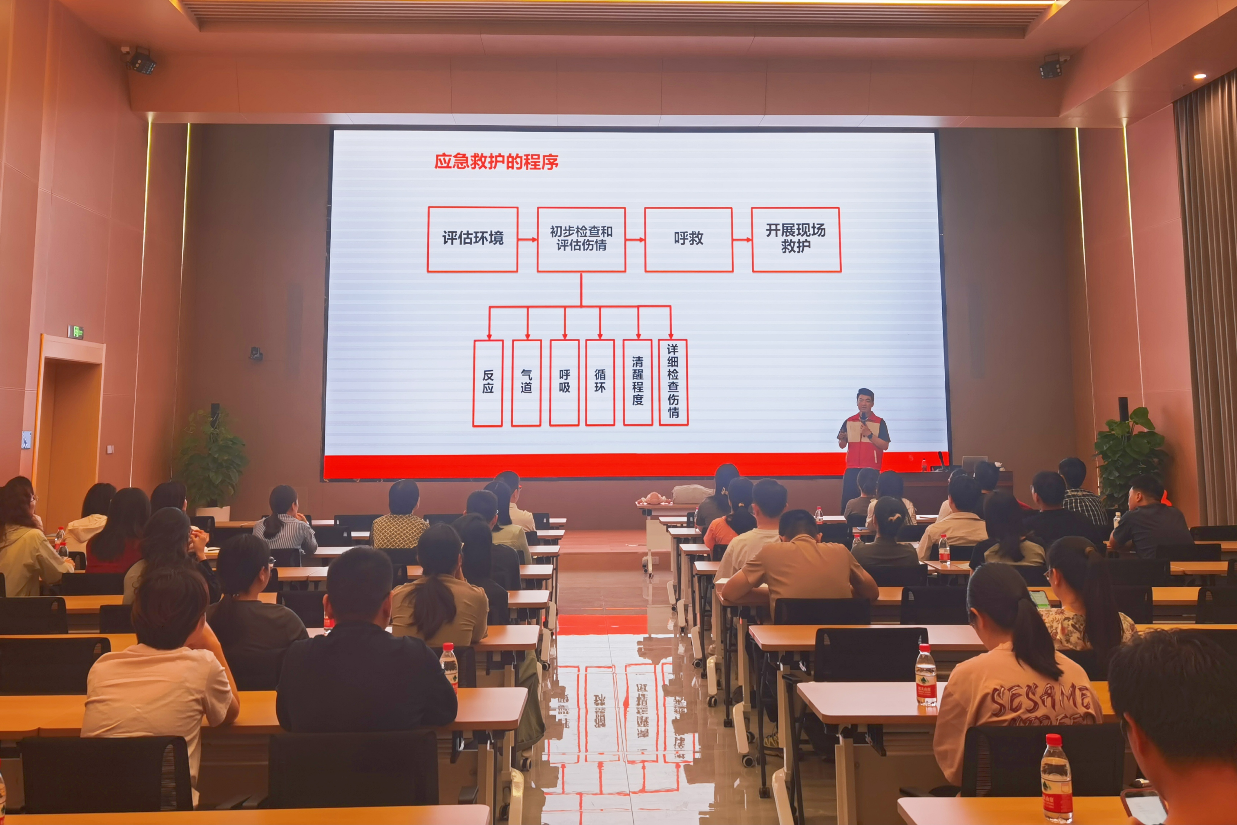 培訓現(xiàn)場,市紅十字會應急救護講師結(jié)合救護案例,指出了常見的急救誤區(qū),提供了正確的急救觀念及講解了心肺復蘇術(shù)、AED的操作使用、氣道異物梗阻的處理、外出血的止血與包扎等應急救護知識,同時,模擬演示了各項應急救護的操作細節(jié)。
