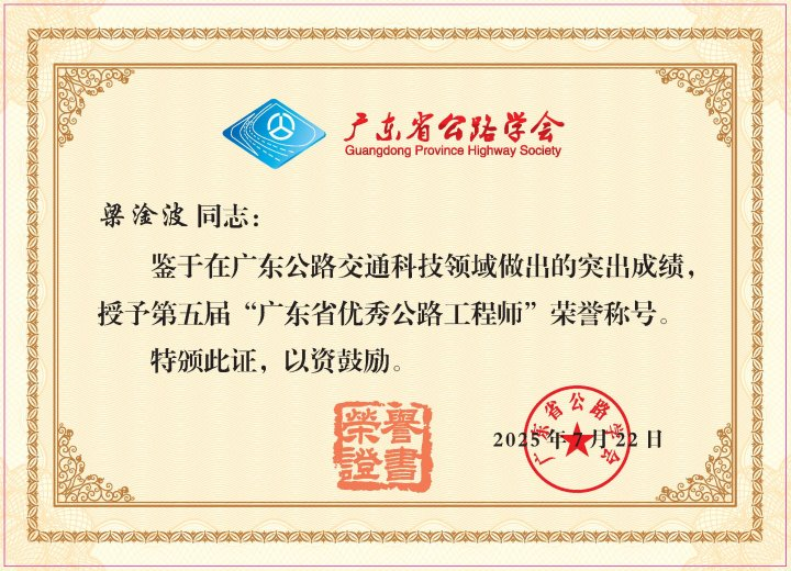 此次梁淦波、王超榮獲“廣東省優(yōu)秀公路工程師”稱號,不僅是行業(yè)對兩位工程師個人專業(yè)能力與突出貢獻(xiàn)的高度認(rèn)可,更彰顯了公司在公路工程領(lǐng)域的技術(shù)實力和人才實力。未來,公司將繼續(xù)深化創(chuàng)新人才培養(yǎng)機制,為交通事業(yè)高質(zhì)量發(fā)展輸入源源不斷的人才動力。