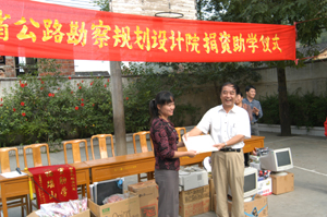 2005年10月17日,是國際消除貧困日,在這個(gè)特殊的日子里,院董事長、黨委書記石國彬同志帶領(lǐng)由本院職工組成的扶貧助學(xué)慰問團(tuán)一行25人,來到清遠(yuǎn)連南瑤族自治縣三排鎮(zhèn)大埂小學(xué),進(jìn)行“回報(bào)社會,奉獻(xiàn)愛心”捐資助學(xué)活動。本次募捐是結(jié)合保持共產(chǎn)黨員先進(jìn)性教育活動開展的,由院工會組織發(fā)起,所有捐款全部采用職工自愿的形式。在捐贈儀式上,石董事長代表全院職工將26980元現(xiàn)金當(dāng)場捐獻(xiàn)給了大埂小學(xué),(其中15000元用于成立“廣東省公路勘察規(guī)劃設(shè)計(jì)院扶貧助學(xué)基金”、其余款項(xiàng)用于購置教學(xué)設(shè)備),此項(xiàng)義舉受到了該縣縣委、縣教育主管部門領(lǐng)導(dǎo)的充分肯定和高度贊揚(yáng)。廣大同學(xué)也紛紛表示一定珍惜學(xué)習(xí)機(jī)會,不辜負(fù)社會各界的關(guān)愛和期望,長大成才后報(bào)效祖國……