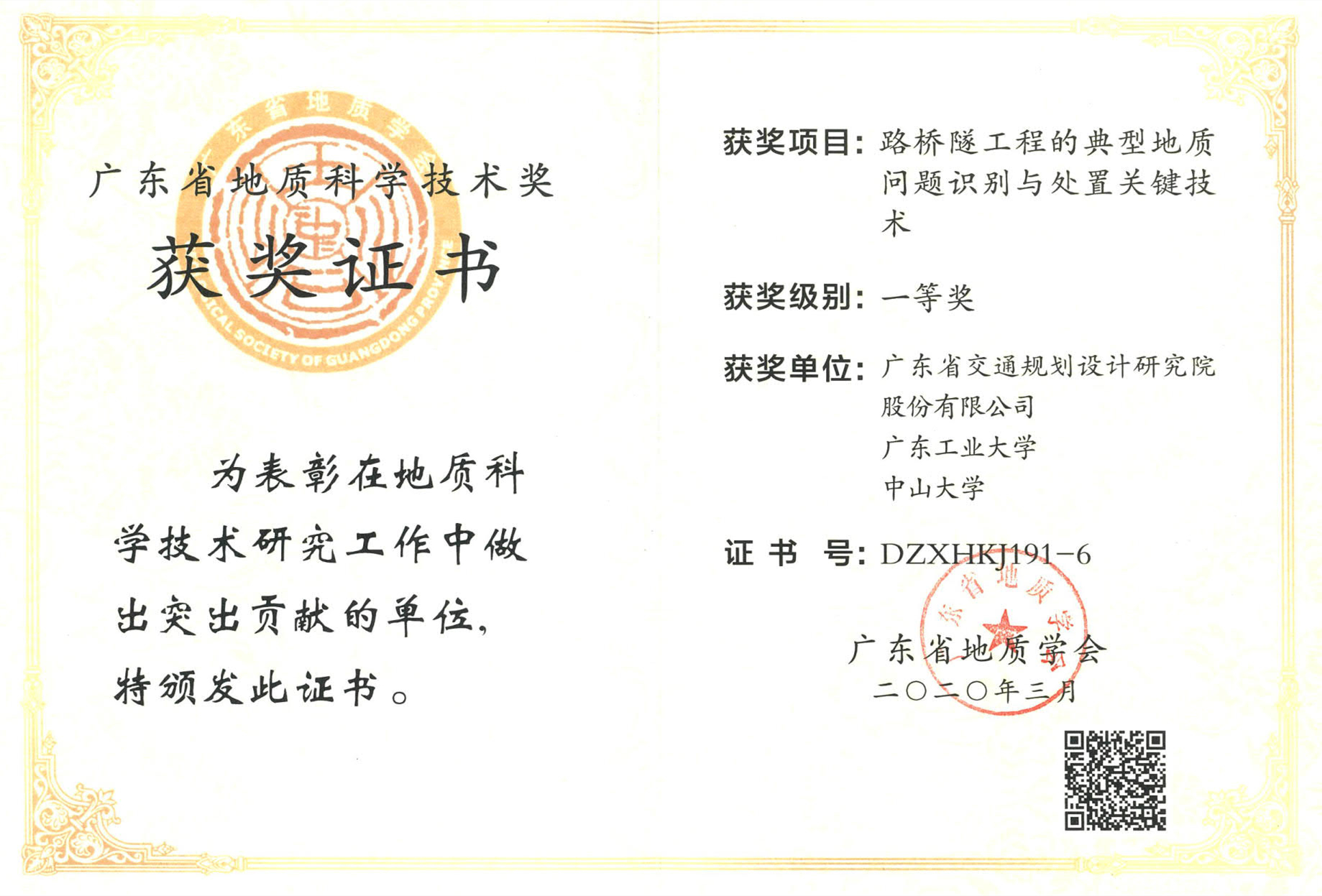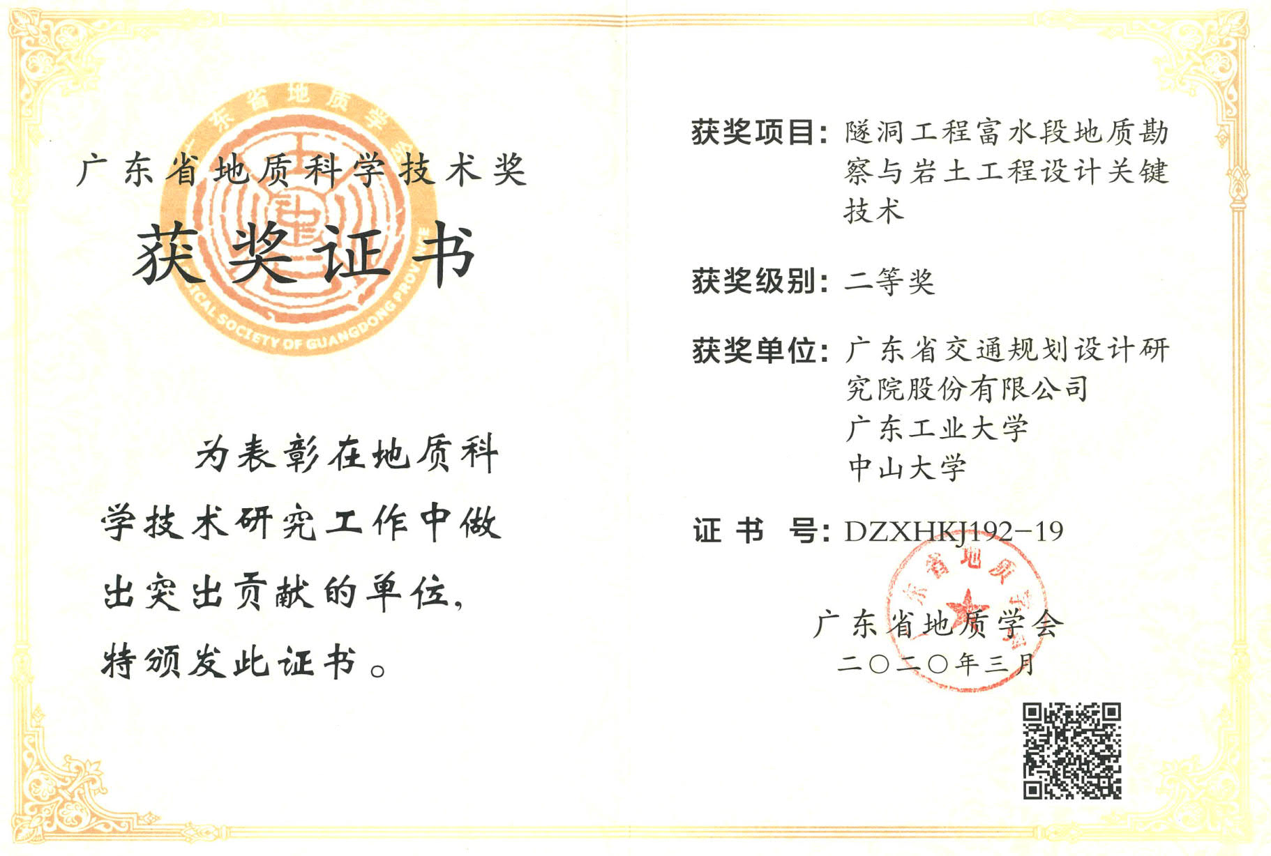 近日,公司在“2019年度廣東省地質(zhì)學(xué)會(huì)科學(xué)技術(shù)獎(jiǎng)”評(píng)選中喜創(chuàng)佳績(jī)。公司作為第一單位共有兩個(gè)項(xiàng)目獲獎(jiǎng),其中“路橋隧工程的典型地質(zhì)問(wèn)題識(shí)別與處置關(guān)鍵技術(shù)”榮獲一等獎(jiǎng),“隧洞工程富水段地質(zhì)勘察與巖土工程設(shè)計(jì)關(guān)鍵技術(shù)”榮獲二等獎(jiǎng)。兩個(gè)獲獎(jiǎng)項(xiàng)目的承擔(dān)部門(mén)均為巖土勘察分院。