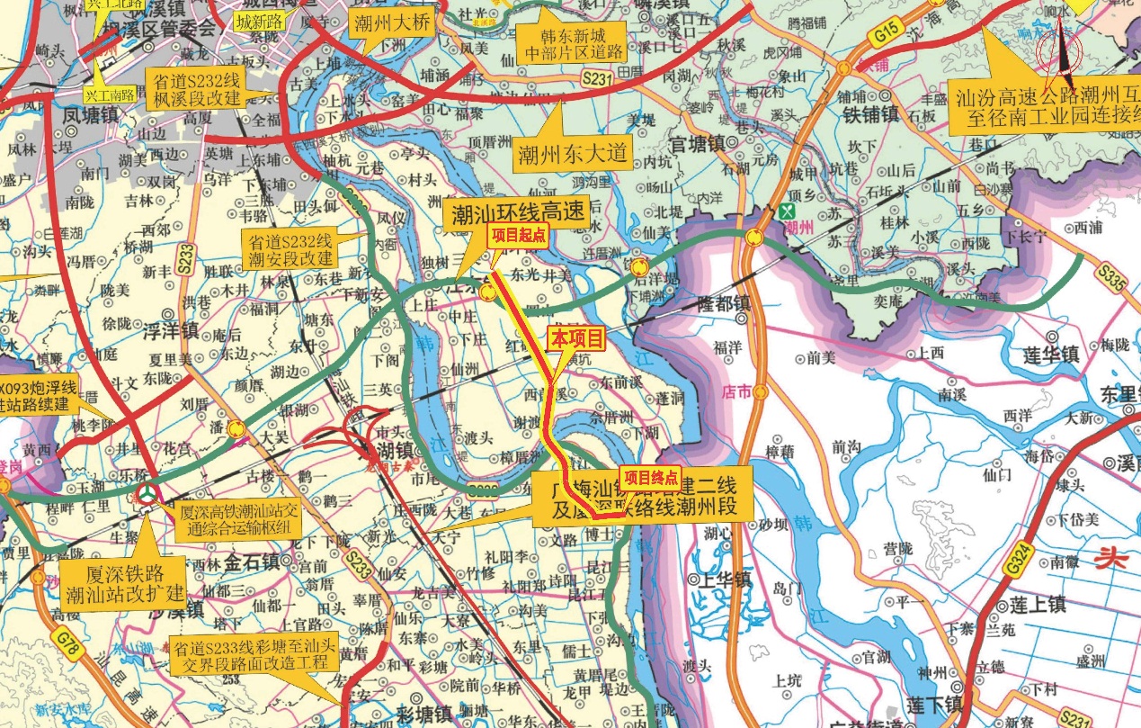 該項(xiàng)目預(yù)計(jì)于今年7月份開工建設(shè)。項(xiàng)目的建設(shè)進(jìn)一步完善了潮州市公路網(wǎng)布局,加強(qiáng)了潮汕環(huán)線與潮安區(qū)地方路網(wǎng)之間的銜接,是江東島連接韓江兩岸的交通要道,對(duì)于解決江東島群眾出行需求、增強(qiáng)當(dāng)?shù)馗咚俟肪W(wǎng)的輻射力度、加快區(qū)域城市化進(jìn)程具有重要意義。
