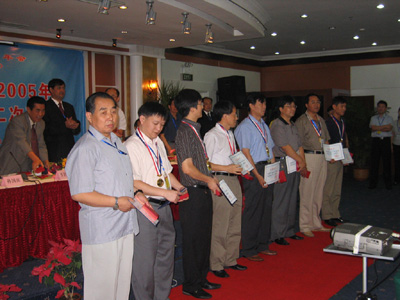 金秋八月,中國(guó)公路學(xué)會(huì)在新疆烏魯木齊市隆重召開(kāi)了2005年學(xué)術(shù)年會(huì)暨六屆二次理事會(huì),開(kāi)幕式后會(huì)議舉行了“第三屆中國(guó)公路百名優(yōu)秀工程師”頒獎(jiǎng)儀式,我院彭向榮副總工程師作為廣東省唯一獲此殊榮的工程師參加了此次大會(huì),并受到表彰。 彭向榮副總工在領(lǐng)獎(jiǎng)臺(tái)上 彭向榮副總工微笑著向我們走來(lái) 彭向榮副總工戴上了金閃閃的獎(jiǎng)?wù)?/center> 彭向榮副總工與廣東省交通廳陳冠雄副廳長(zhǎng)(左二)等領(lǐng)導(dǎo)合影留念
