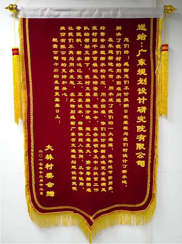 為民服務(wù)顯真情,收到錦旗受贊譽(yù)——無(wú)償完成大林村新水池設(shè)計(jì)任務(wù),為當(dāng)?shù)厮那Ф嗝习傩战鉀Q用水難的問(wèn)題